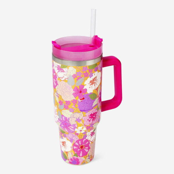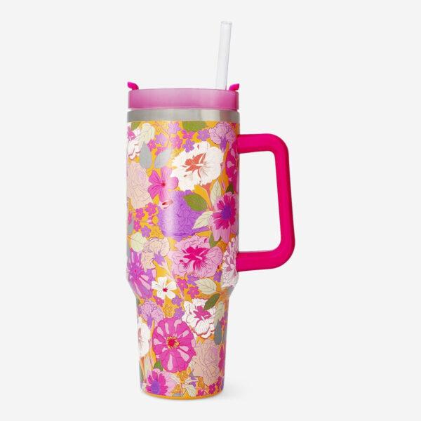 Add a burst of floral charm to your daily hydration routine with this stylish tumbler featuring a vibrant flower print. Measuring 14.5 x 27 x 9.8 cm, this generously sized tumbler holds up to 1200 ml, making it perfect for keeping your favourite beverages at hand throughout the day. Whether you are at home, in the office, or on the go, this tumbler combines practicality and style. The ergonomic handle offers a comfortable grip, and the lid with a built-in straw opening helps prevent spills. Its eye-catching design adds a touch of elegance to your kitchen or picnic essentials, making it a delightful companion for any occasion!