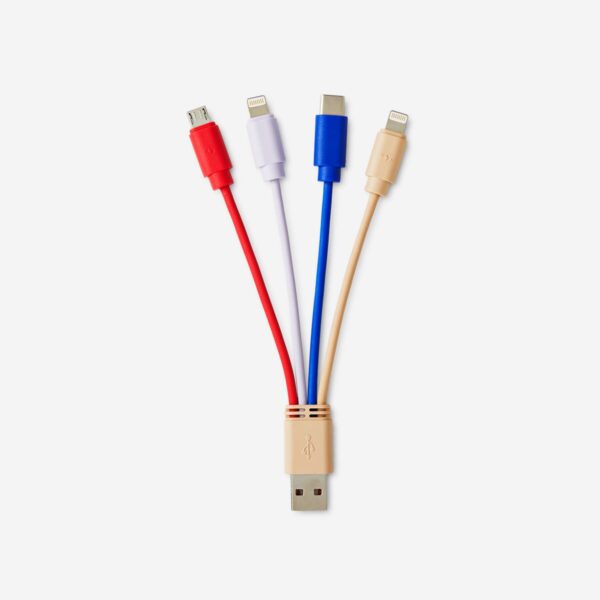 Stay connected and powered up with this versatile 4-in-1 charging cable, a colourful companion for your devices. Whether you need Lightning, USB-C, or Micro USB, this 10 cm cable has you covered, ensuring your gadgets never run out of juice. Perfect for those who love a splash of colour and a world of convenience.