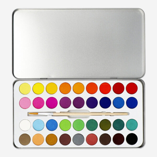 Unleash your artistic side with this versatile set of 36 watercolours, designed for both beginners and experienced painters. Offering a wide range of vibrant shades, this palette provides endless opportunities for creative exploration, whether you are working on detailed landscapes or abstract designs. The set comes complete with a brush, so you are ready to start painting right away.