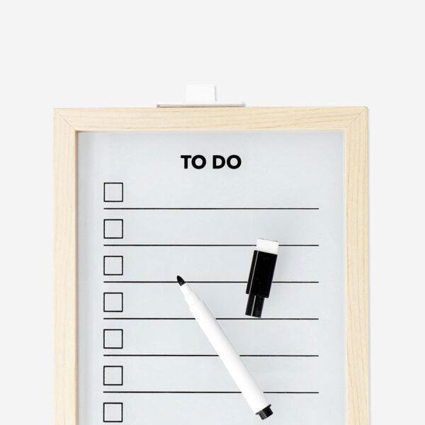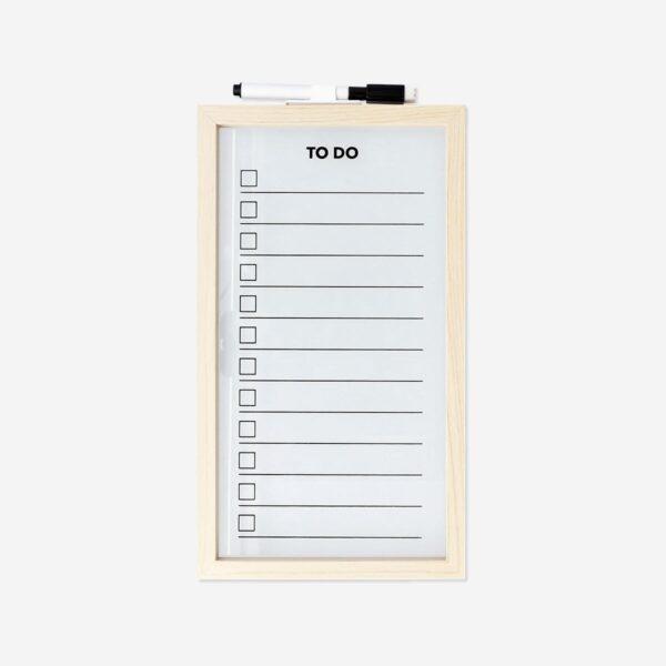 Stay on top of your tasks with this wooden planner board with marker, designed for both style and efficiency. Featuring a clean to-do list format, it is encased in a natural brown wooden frame that adds a refined touch to any workspace or home office. The clear surface is easy to write on and wipe clean, making it a practical solution for updating your plans as they evolve. The included marker allows you to start organising straight away. Measuring 30 x 17 x 2 cm, this planner board is compact enough to fit on most desks or be mounted on the wall for easy visibility. A reliable daily companion to manage goals and keep your day on track.