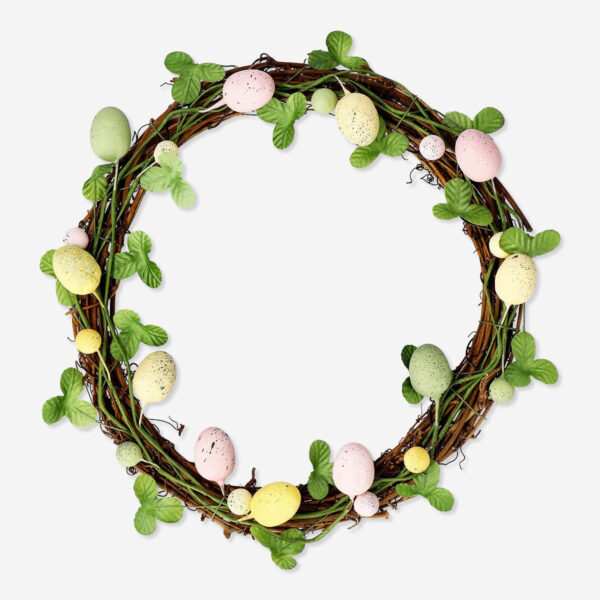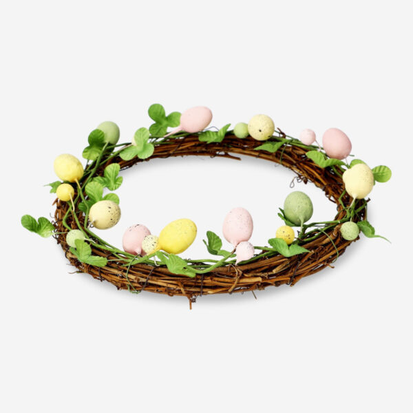Embrace Easter with our festive wreath, a charming addition to your home decor. Measuring 25 cm in diameter, this multi-coloured wreath features delightful eggs and leaves. Perfect for interior decoration, it brings a festive touch to your space. Celebrate the spirit of Easter with this unique wreath adorned with eggs and leaves, adding delightful and seasonal charm to your home this holiday.