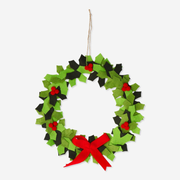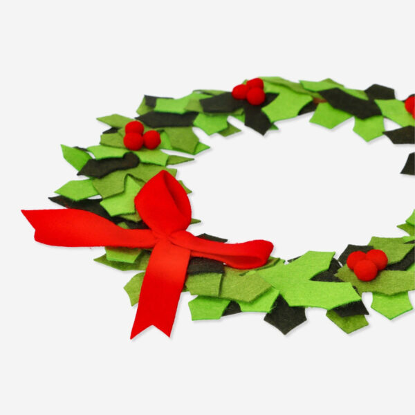 Add a festive touch to your home with our felt wreath! This green and red wreath measures 25 x 29 x 0.4 cm and adds a warm and inviting ambience to your interior decoration. Welcome the holiday spirit into your space with this charming and traditional wreath.